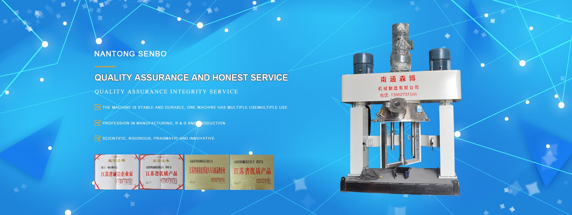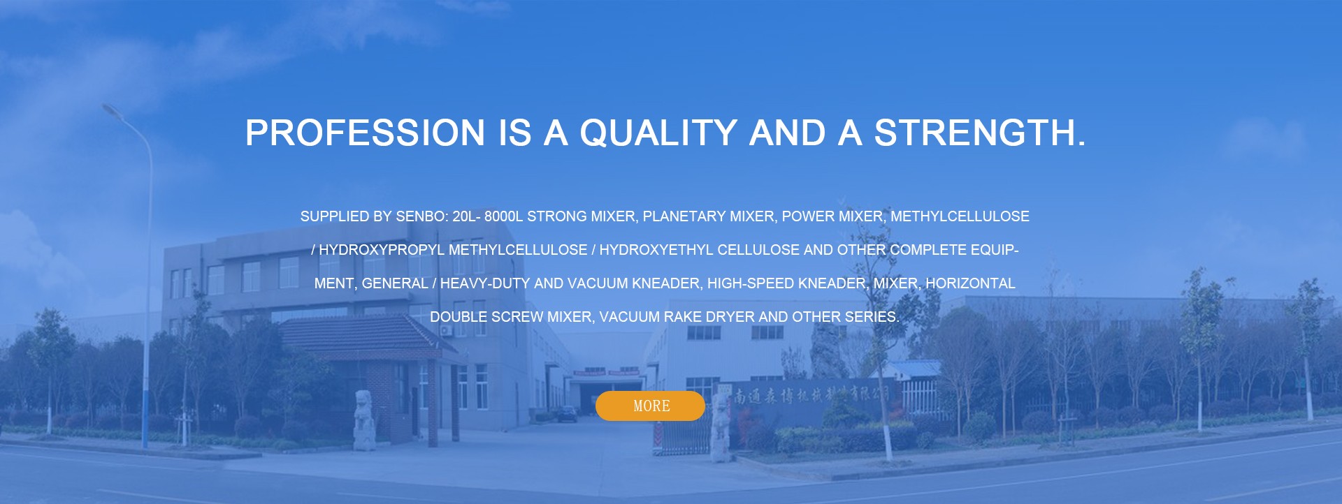 The company is a professional manufacturer of kneaders, integrating R & D and production. The main products are: 20l-8000l strong mixer, planetary mixer, power mixer, methylcellulose / hydroxypropyl methylcellulose / hydroxyethyl cellulose and other complete equipment, general / heavy-duty and vacuum kneader, high-speed kneader, mixer, horizontal double screw mixer, vacuum rake dryer and other series.